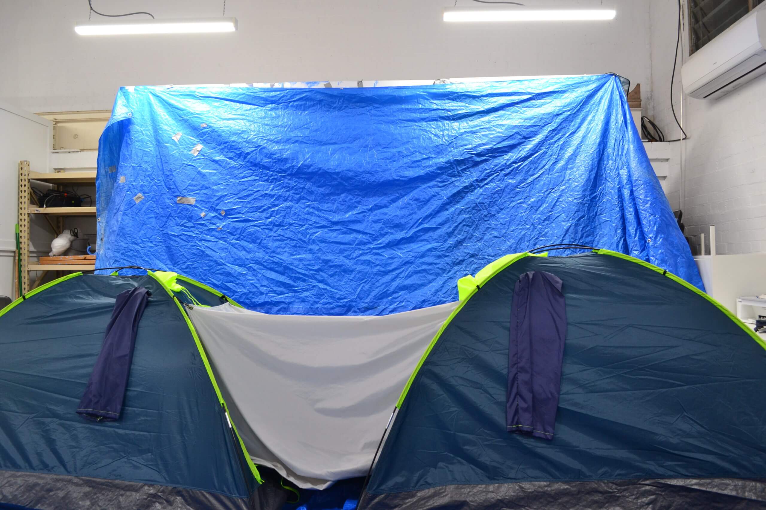 I’ve found tents particularly compelling in their intersectional context, as mobile spaces of temporality, intimacy, shelter, housing. I am interested in the visual language of tents as things that are at times vital, protective, cheeky or leisurely, their relation to protest, war, housing crisis, festivals, queer cruising culture, and so on. The crinkly, shiny materials of nylon, PVC and tarp are so aggressively unnatural that they become anti-natural, barriers that protect the user from the elements, their entire existence defies nature. There’s something dangerous (environmentally and physically) about these materials, they feel, or at least they should feel, completely alien to this world. Thematically in this project, I think I find these plastic, anti-natural materials to be a contemporary equivalent of the forbidden materials given to humans by the angels, which I mentioned in my previous blog. These materials that we have come to rely on are harming us and the world, the punishment for harnessing “forbidden” unnatural materials and processes.