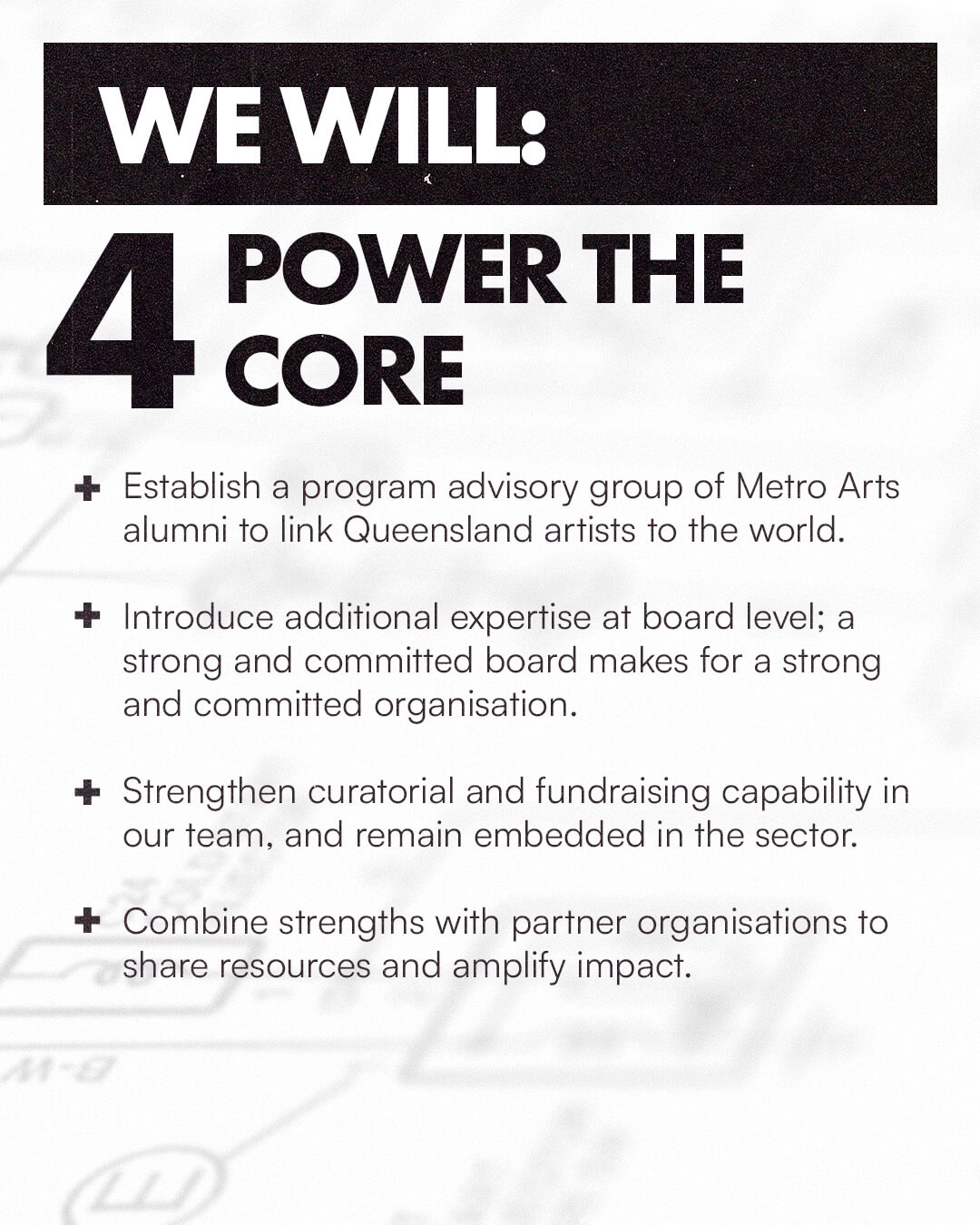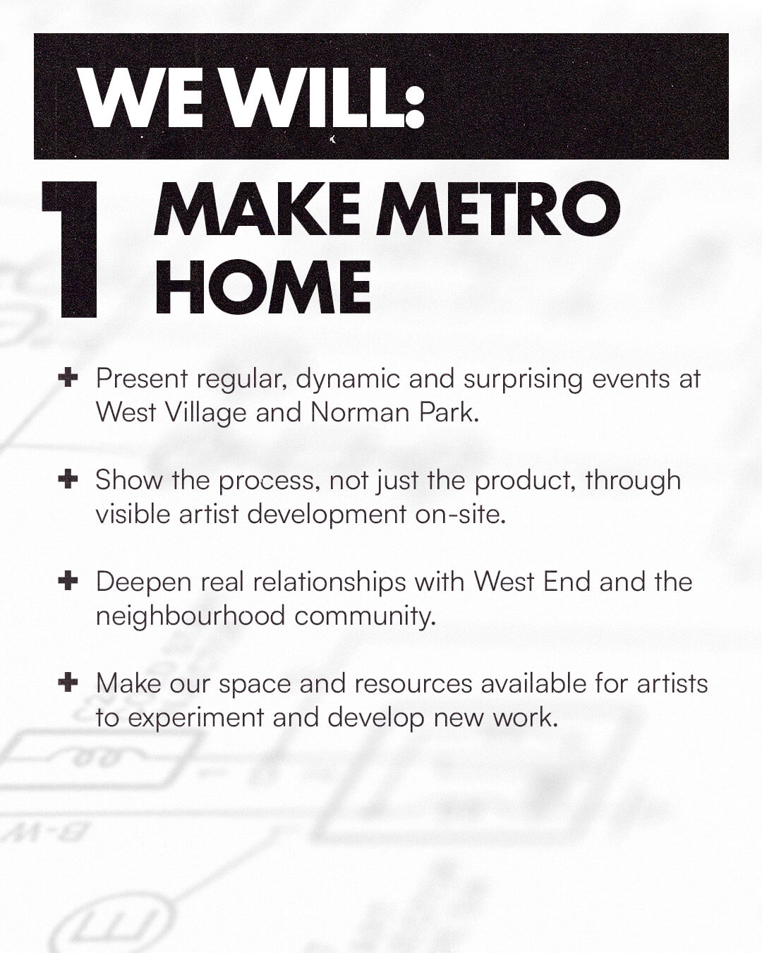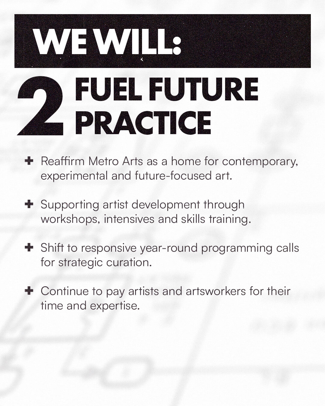 This process is about us upgrading how things work so they work better. Over the years, Metro Arts has grown and changed, and the world around it has changed too. We’re building new partnerships, rethinking how we present art, how we use our spaces, and how we support artists to make ambitious work.